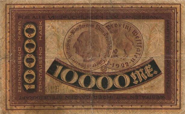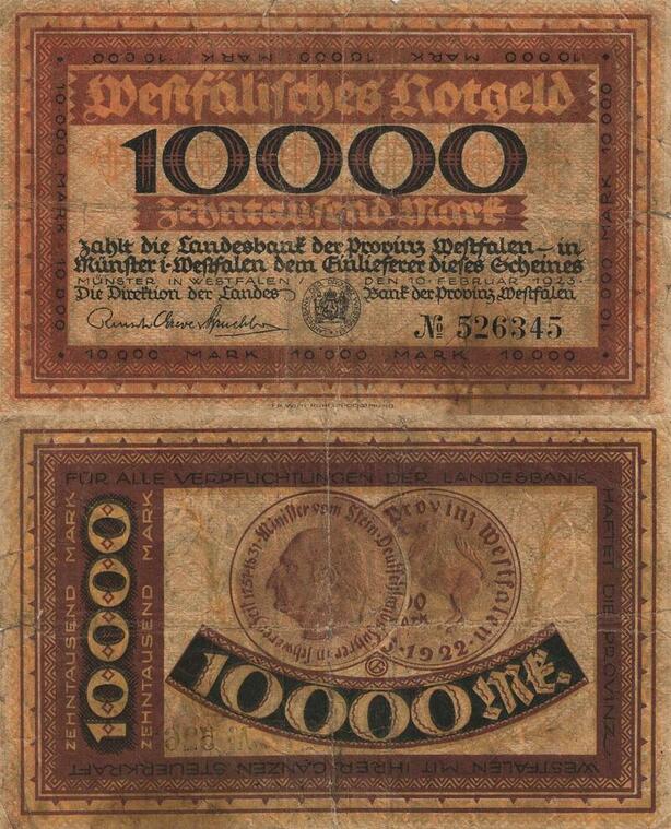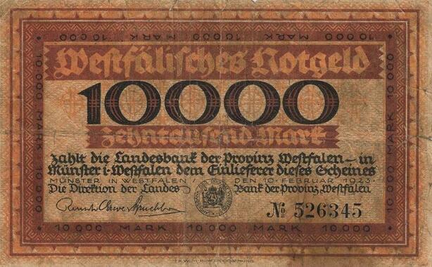 Q4526 Banknote Germany Münster 10000 Mark Landesbank Westfalen 1922 Notgeld