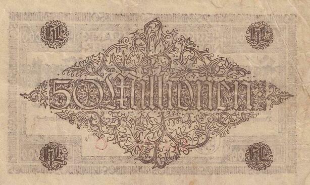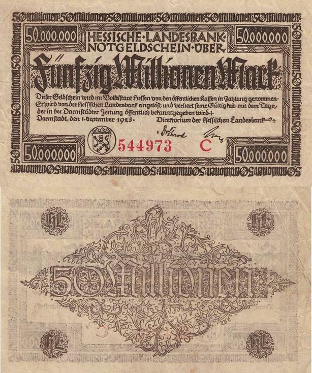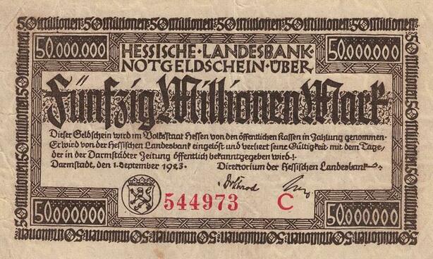 Q4528 Banknote Germany Darmstadt 50 Millionen Mark Hessische Landesbank 1923