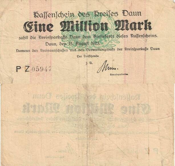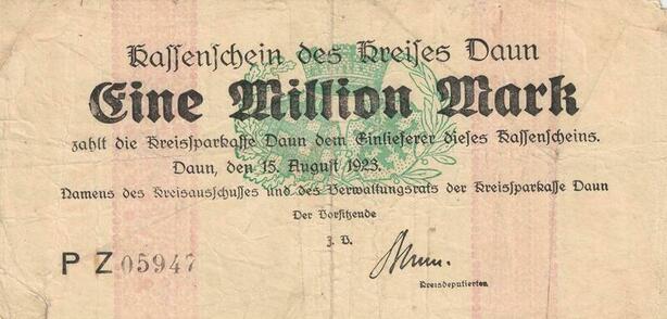 Q4545 Banknote Germany Daun Trier Kassenschein 1 Million Mark 1923 - Make Offer