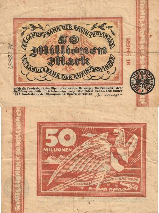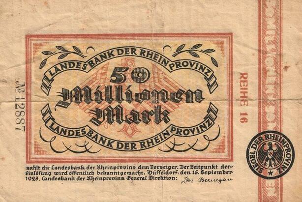 Q4546 Banknote Germany Düsseldorf 50 Millionen Mark Landes Bank 1923 - Offer