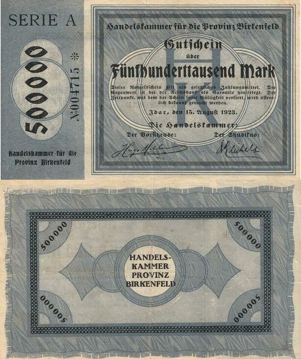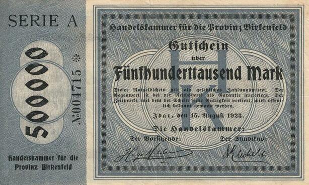 Q4554 Banknote Germany Idar Provinz Birkenfeld 500000 Mark 1923 Notgeld - Offer