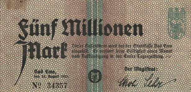 Q4561 Banknote Germany Bad Ems Das 5 Millionen Mark 1923 Notgeld - Offer