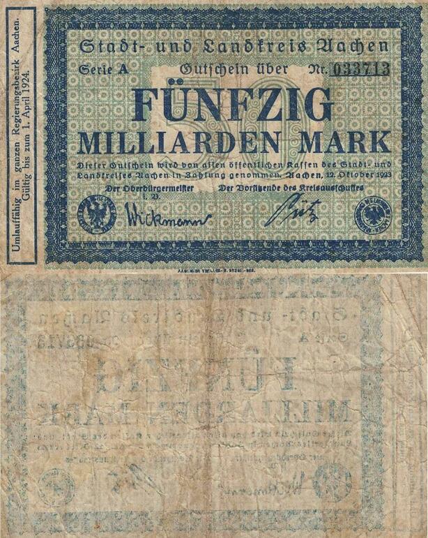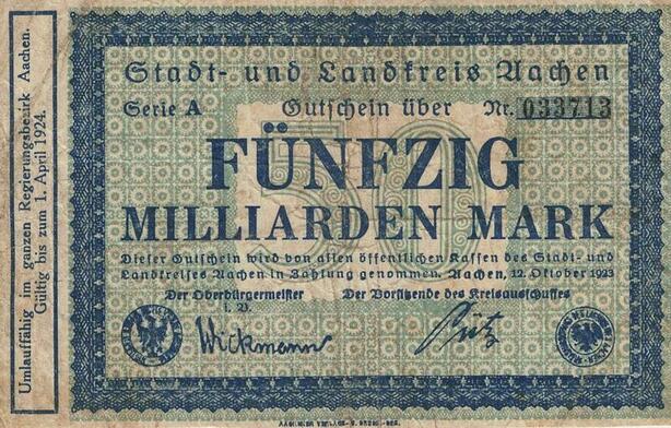 Q4569 Banknote Germany Aachen 50 Milliarden Mark 1923 Notgeld - Make Offer