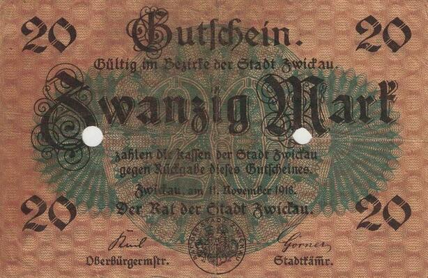 Q4573 Banknote Germany Zwickau 20 Mark 1918 Notgeld - Make Offer