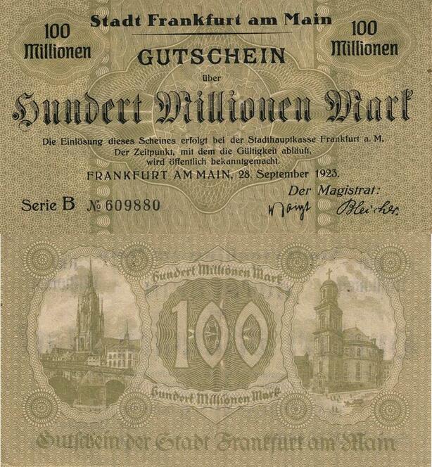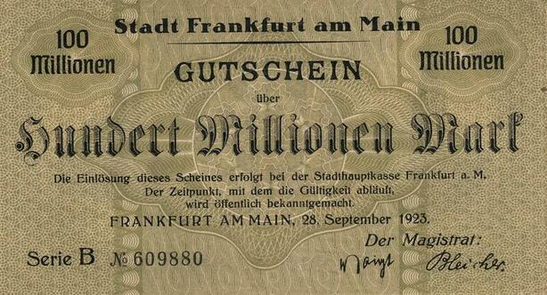 Q4586 Banknote Germany Frankfurt Am Main 100 Millionen Mark 1923 Notgeld AU