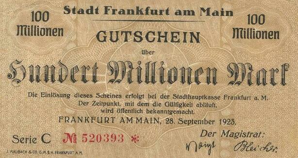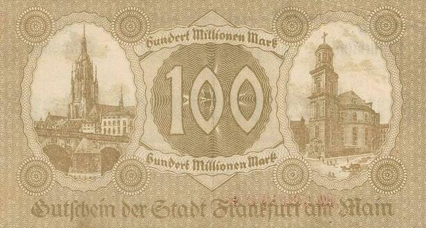 Q4588 Banknote Germany Frankfurt am Main 100 Millionen Mark 1923 Notgeld