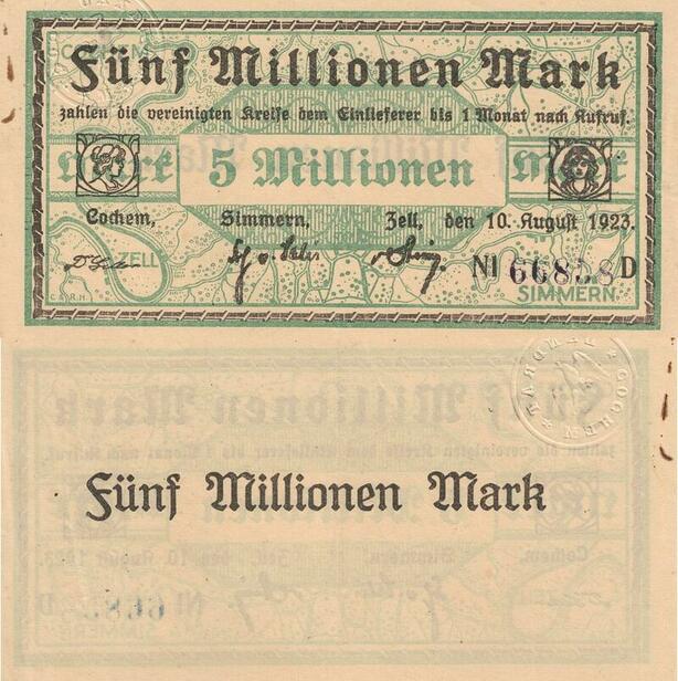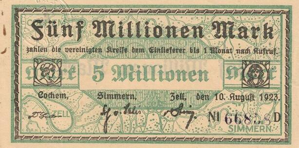 Q4592 Banknote Germany Simmern 5 Millionen Mark 1923 Notgeld UNC Make Offer