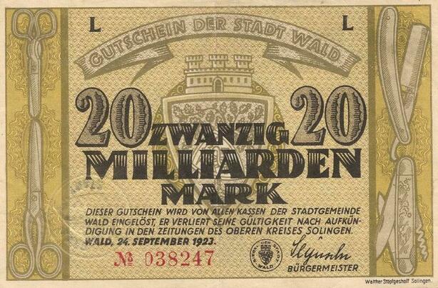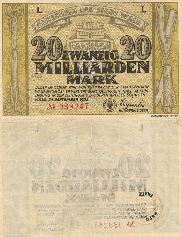 Q4596 Banknote Germany Wald 20 Milliarden Mark 1923 Notgeld - Make Offer