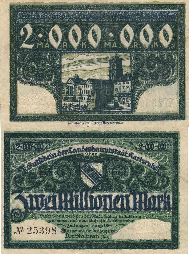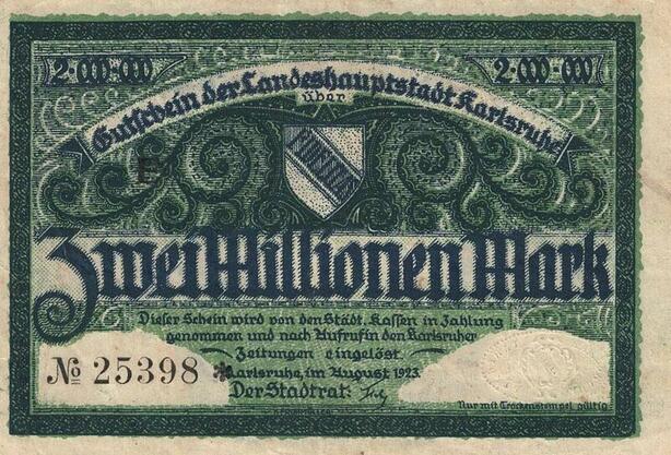 Q4600 Banknote Germany Karlsruhe 2 Millionen Mark 1923 Notgeld - Offer