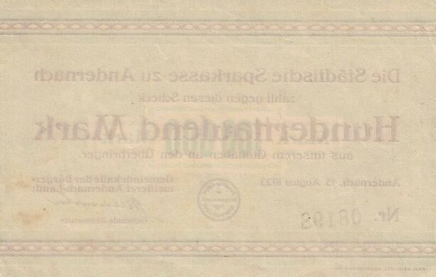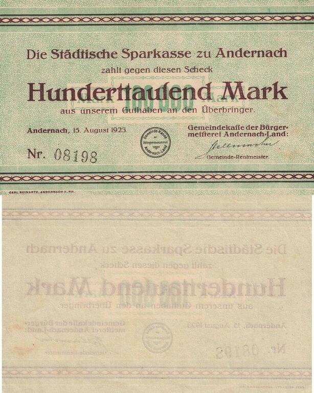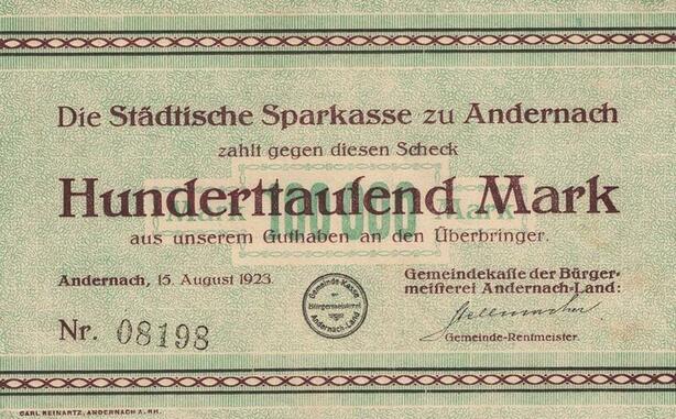 Q4602 Banknote Germany Andernach 100000 Mark Sparkasse 1923 AU - Make Offer