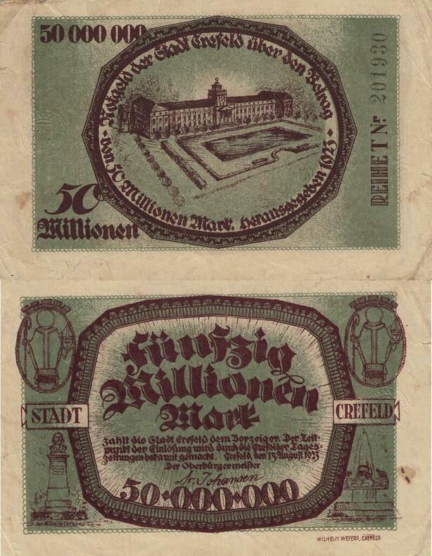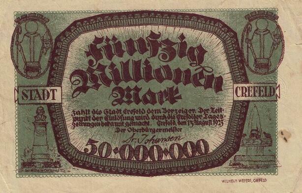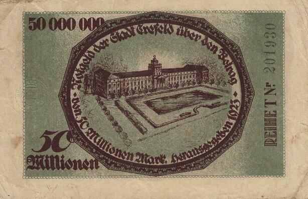 Q4607 Banknote Germany Krefeld 50 Millionen Mark 1923 Notgeld - Make Offer