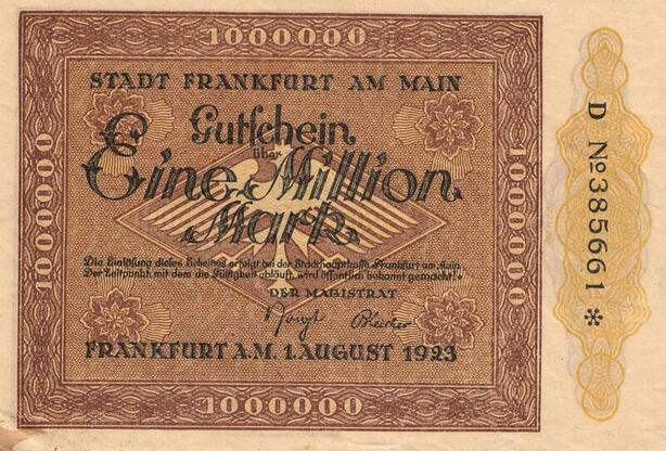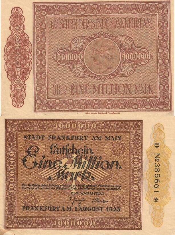 Q4608 Banknote Germany Stadt Frankfurt 1 Million Mark 1923 Notgeld UNC - Offer