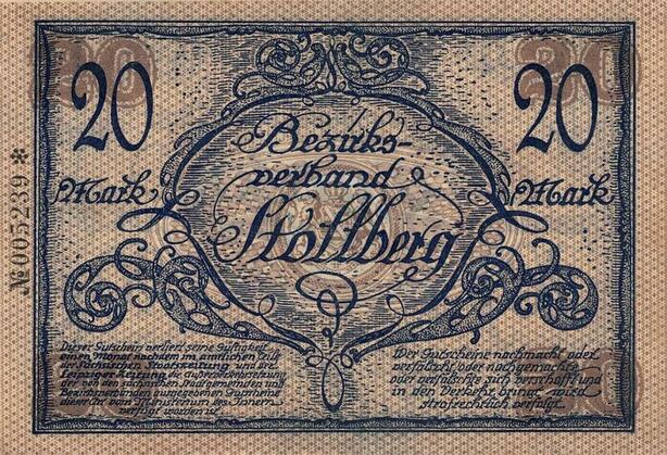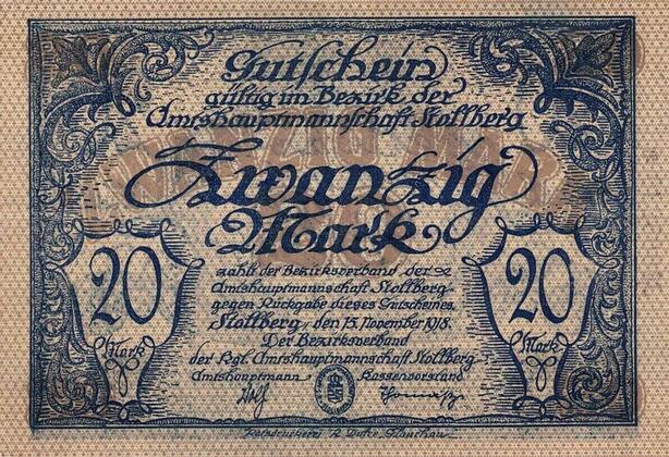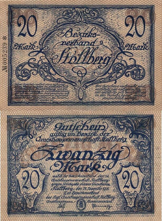Q4609 Banknote Germany Stollberg 20 Mark 1918 Notgeld UNC - Make Offer