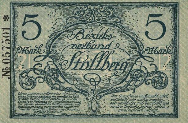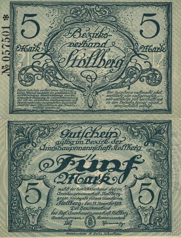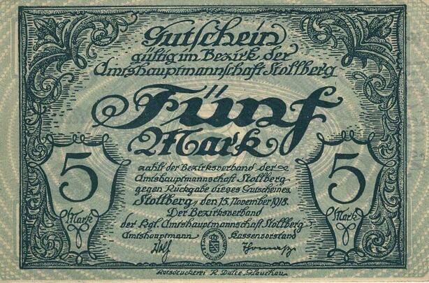 Q4610 Banknote Germany Stollberg 5 Mark 1918 Notgeld UNC - Make Offer