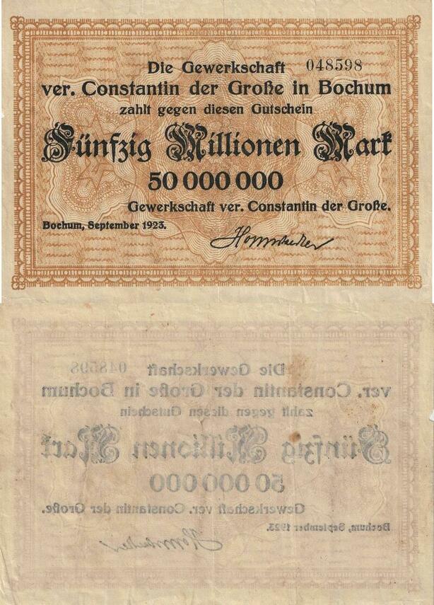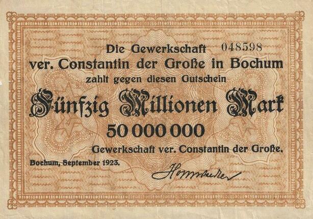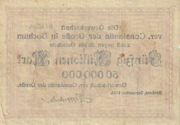Q4611 Banknote Germany Bochum 50 Millionen Mark Constantin 1923 AU - Offer