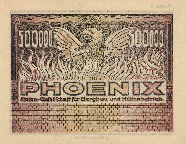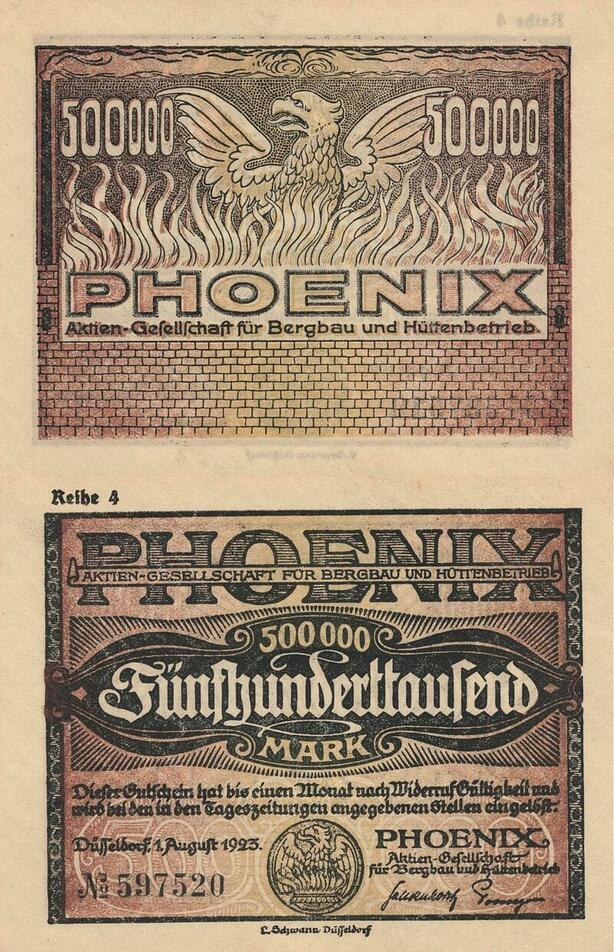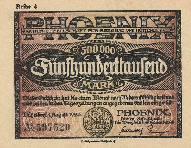 Q4621 Banknote Germany Düsseldorf 500000 Mark Phoenix Bergbau 1923 Notgeld UNC