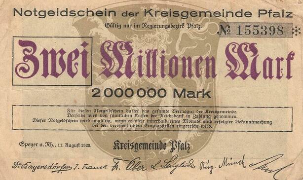 Q4623 Banknote Germany Speyer 2 Millionen Mark Notgeld 1923 - Make Offer