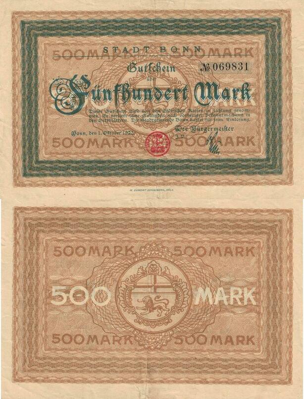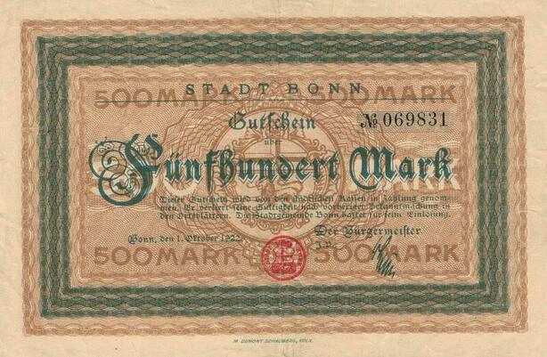 Q4624 Banknote Germany Bonn 500 Mark Stadt Notgeld 1922 - Make Offer