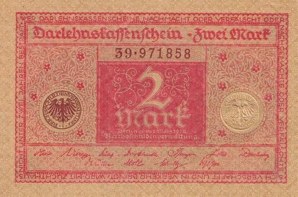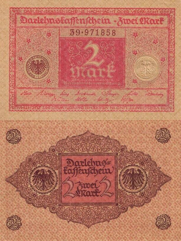 Q4638 Banknote Germany Berlin 2 Mark Eagles Darlehenskassenschein 1920 AU
