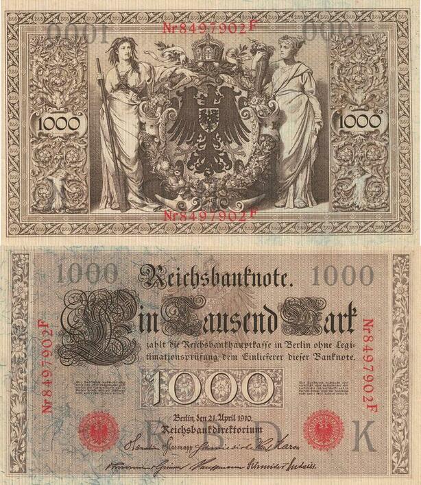 Q4641 Banknote Germany Berlin 1000 Mark Eagles Reichs RBDK 1910 AU+ Make Offer