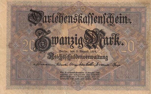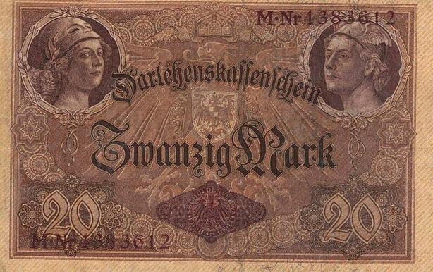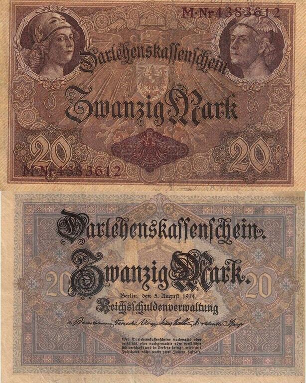 Q4650 Banknote Germany Berlin 20 Marks Athena Hermes 1914 -> Make offer