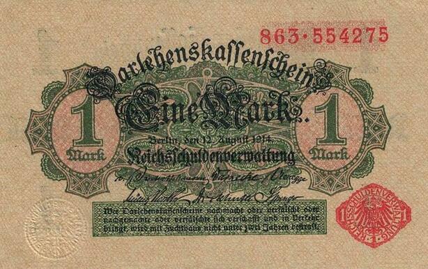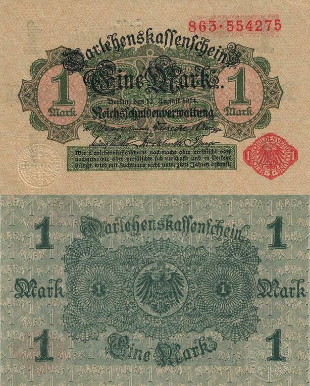 Q4661 Banknote Germany Berlin 1 Mark Darlehenskassenschein 1914 AU Offer