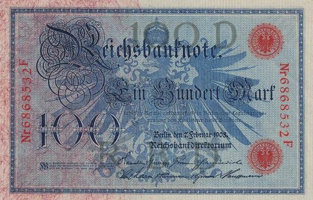 Q4668 Banknote Germany Berlin 100 Mark Reichsbanknote 1908 UNC - Offer