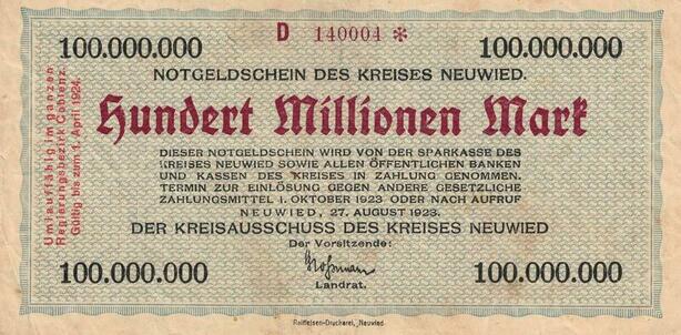 Q4672 Banknote Germany Neuwied 100 Millionen Mark 1928 Notgeld - Offer