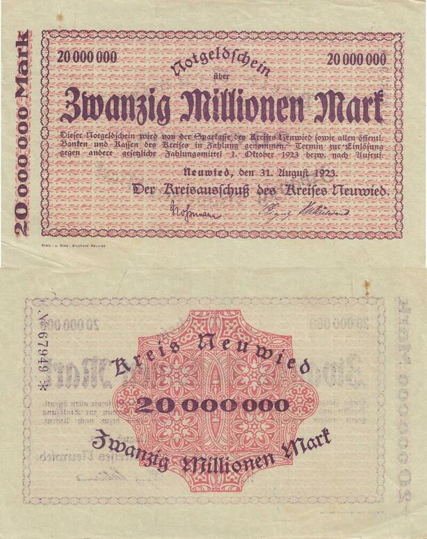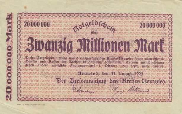 Q4682 Banknote Germany Neuwied 20 Millionen Mark 1923 - Make Offer