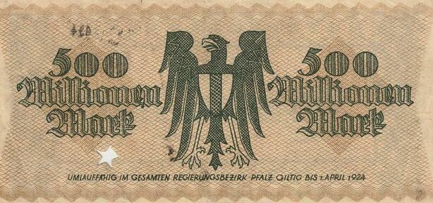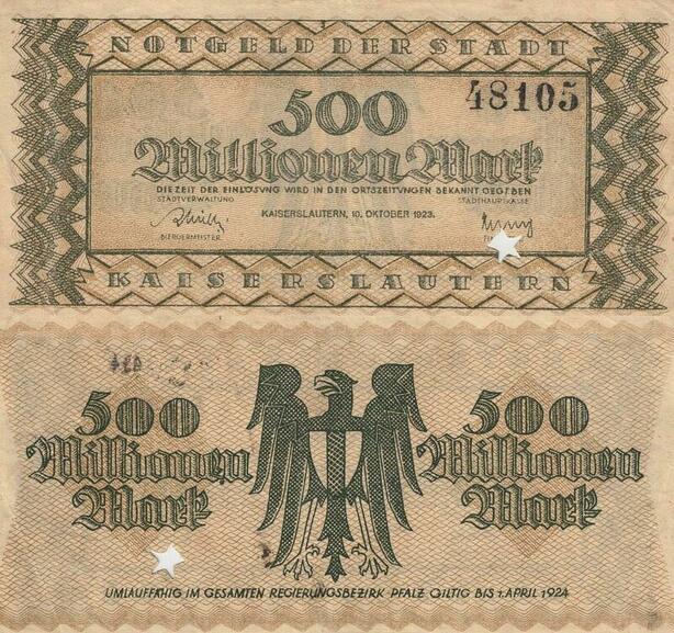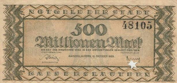 Q4686 Banknote Germany Kaiserlautern 500 Millionen Mark Star 1924 AU - Offer