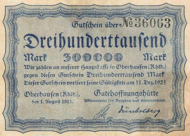 Q4687 Banknote Germany Oberbaufen 300000 Mark 1923 Notgeld - Make Offer
