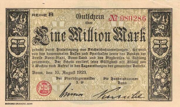 Q4695 Banknote Germany Bonn 1 Million Mark 1923 Notgeld AU + - Make Offer