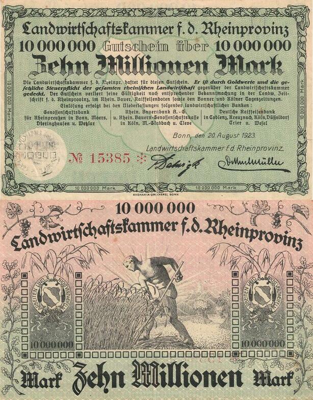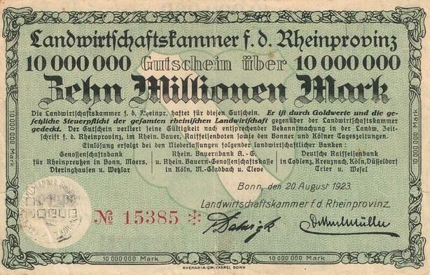 Q4699 Banknote Germany Rheinprovinz Bonn 10 Millionen Mark 1923 Notgeld - Offer