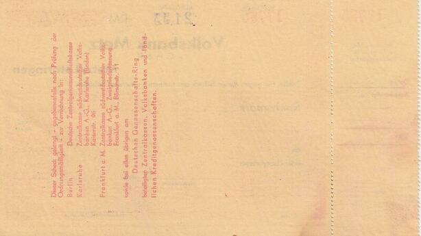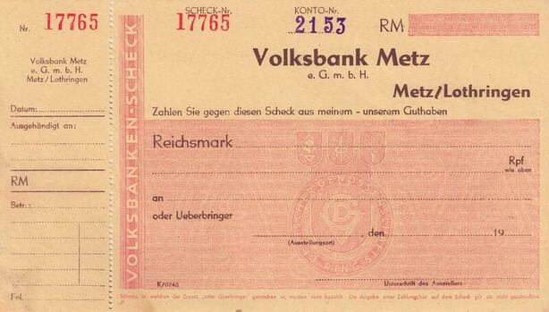 Q4708 Rare Banknote German Metz Bank Check Volksbank Reichsmark 1871-1919 AU