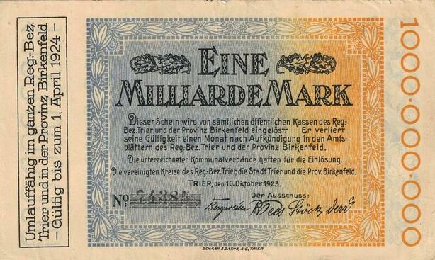 Q4715 Banknote Germany Trier Stadt 1 Milliarde Mark 1923 -> Make offer