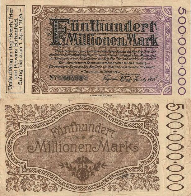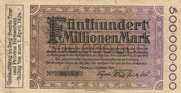 Q4716 Banknote Germany Trier Birkenfeld 500 Millionen Mark 1923 -> Make offer