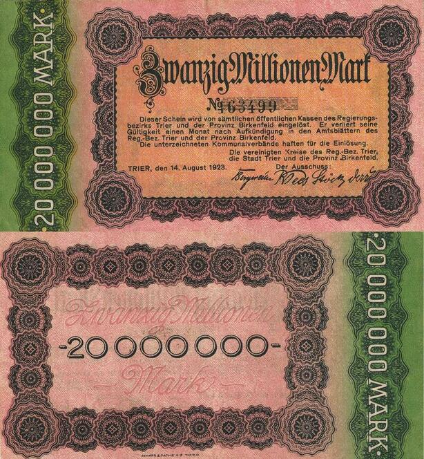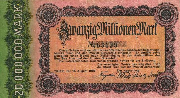 Q4721 Banknote Germany Trier Stadt 20 Millionen Mark 1923 -> Make offer