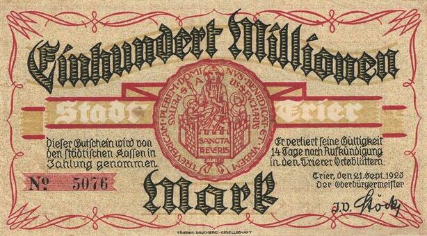 Q4728 Banknote Germany Trier Stadt 100 Millionen Mark 1923 Notgeld - Make Offer