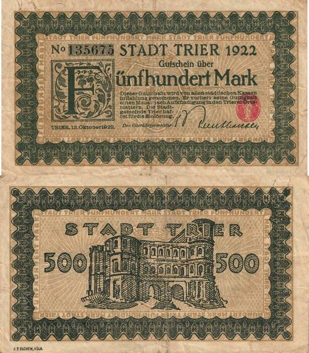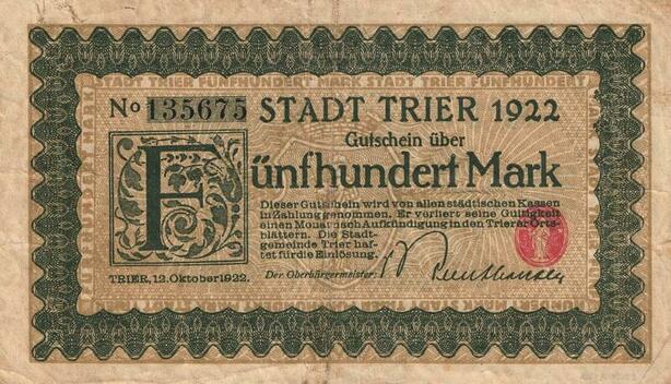 Q4731 Banknote Germany Trier Stadt 500000 Mark Castle 1922 Notgeld - Make Offer