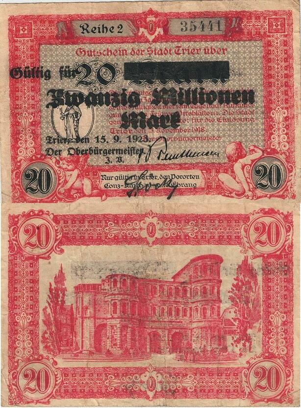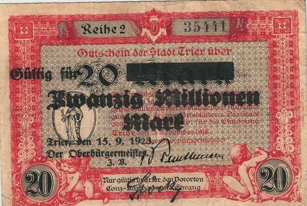 Q4733 Banknote Germany Trier Stadt 20 Millionen Mark Gültig Für 1923 Notgeld
