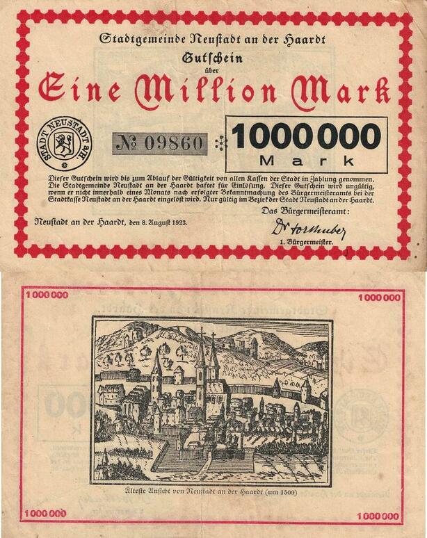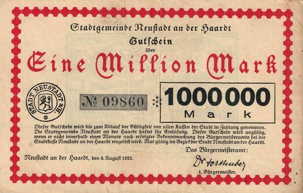Q4737 Banknote Germany Neustadt an der haardt Stadt 1 Million Mark 1923 Notgeld