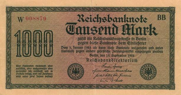 Q4741 Banknote Germany Berlin 1000 Mark 15 September 1922 AU - Make Offer