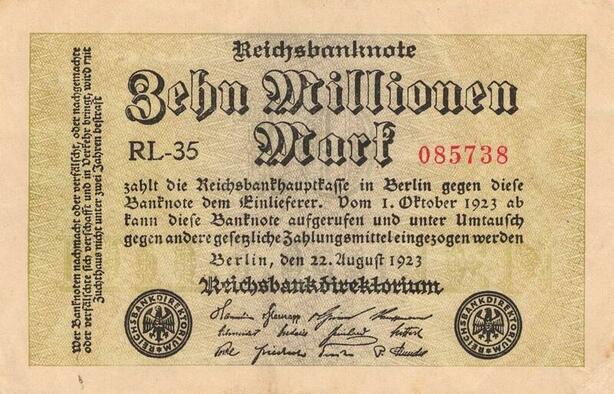 Q4759 Banknote Germany Einlieferer Berlin 10 Millionen Mark Reichsbanknote 1923