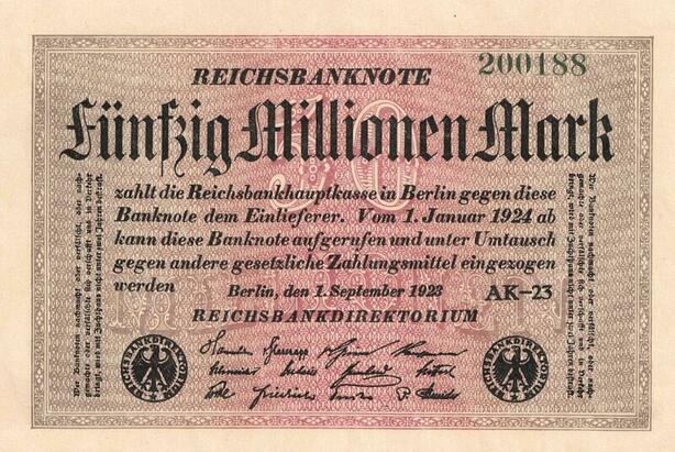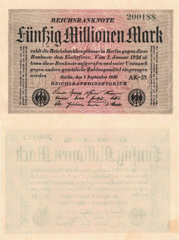 Q4768 Banknote Germany Berlin 50 Millionen Mark Reichsbanknote 1923 AU - Offer