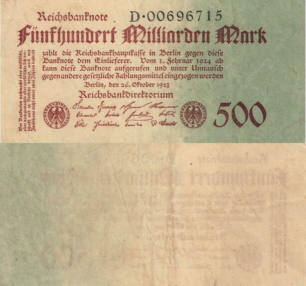 Q4797 Rare Banknote Germany 500 Milliarden Mark Reichsbanknote Berlin 1923
