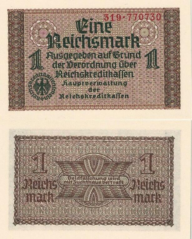 Q4799 Banknote Germany 1 Reichsmark WWII Eagle 1939-1944 UNC - Make Offer
