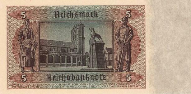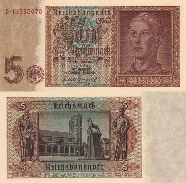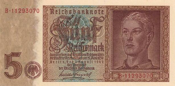 Q4822 Banknote Germany Berlin 5 Reichsmark 1942 Russian Occupation Zone UNC