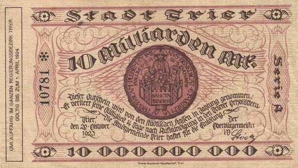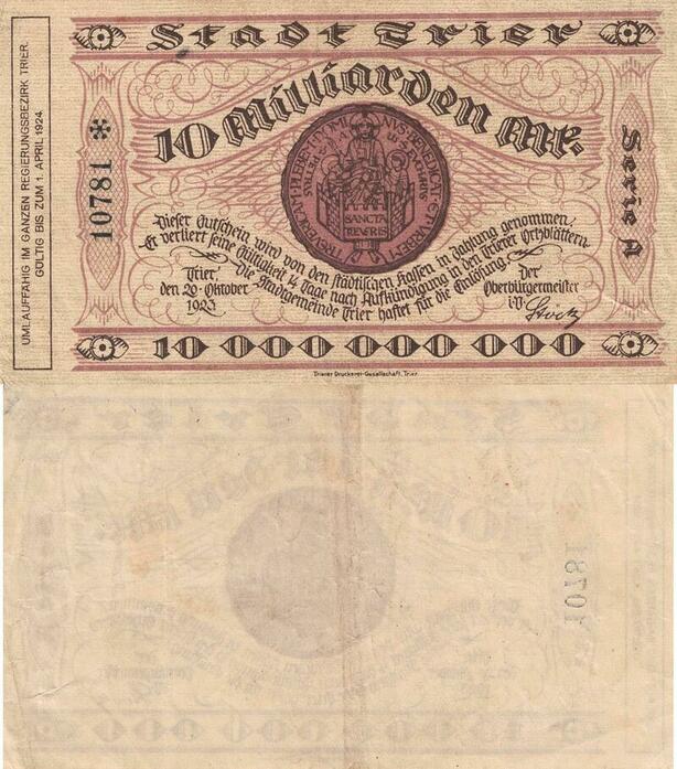 Q4883 Banknote Germany Stadt Trier 10 Milliarden Mark 1923 AU - Make Offer