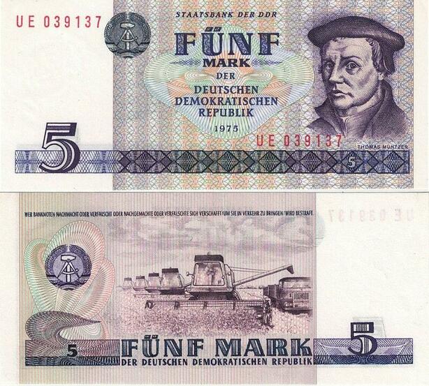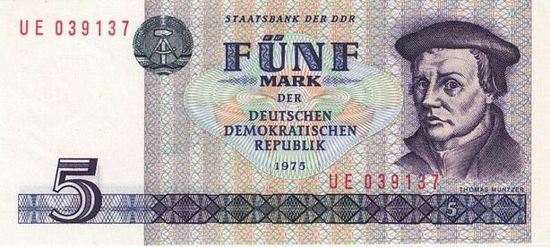 Q4911 Banknote DDR Germany Berlin 5 Mark Thomas Muntzer 1975 UNC - Make Offer