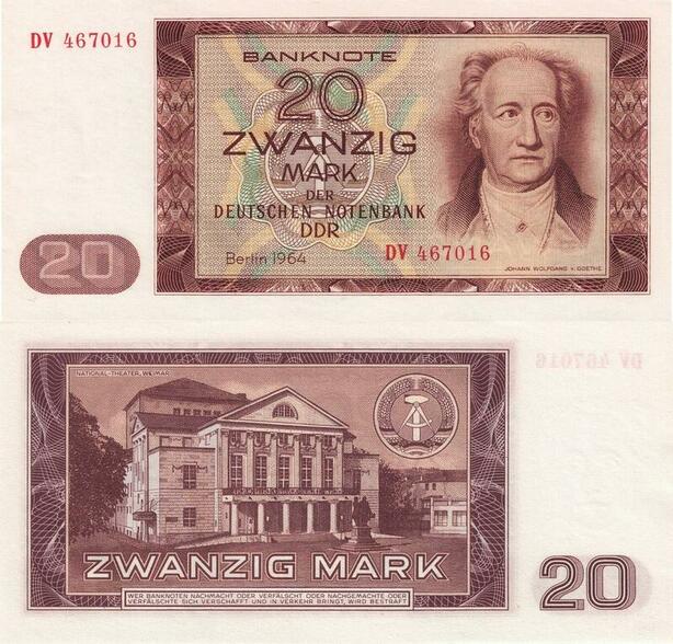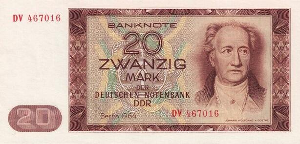 Q4920 Banknote Germany Berlin 20 Mark Johann Wolfgang Goethe 1964 UNC - Offer